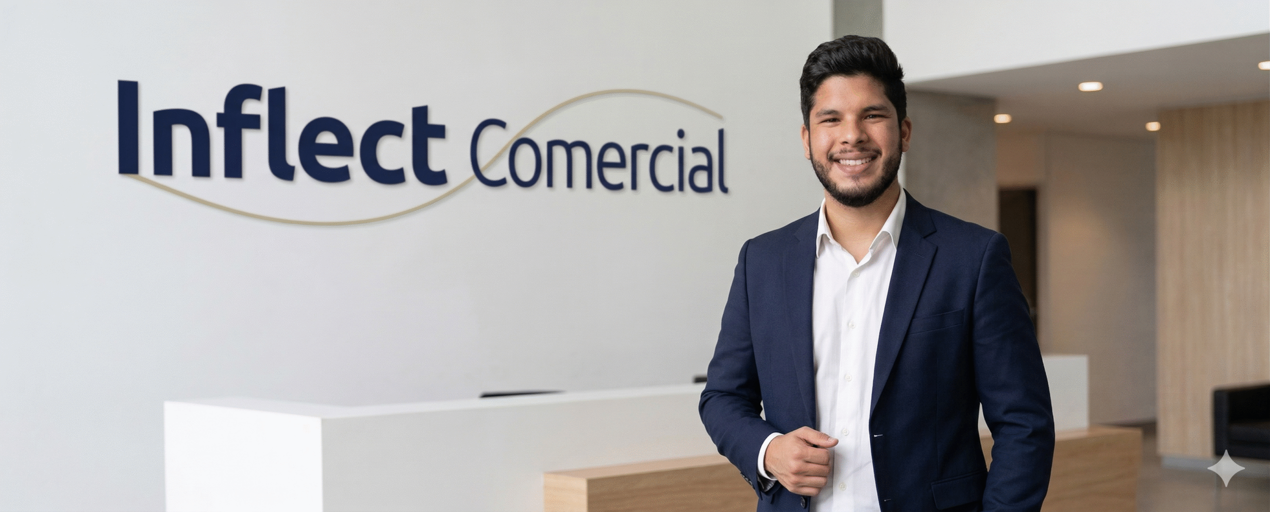 Não sou consultor que leu livro e virou coach. Passei por vendas, captação de investimentos, assessoria parlamentar de deputado federal e carreira corporativa — de assessor a supervisor a gerente nacional de comercial, reconhecido por Flávio Augusto. Depois transformei o comercial de empresas, montei uma agência de marketing e criei o Método Inflect.